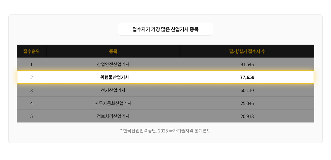 1) 위험물 1위: 2023/2022/2021 대한민국 브랜드만족도 위험물산업기사/기능사 교육 1위 (한경비즈니스)